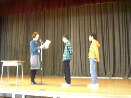 また、心も体も鍛えた児童に贈られる「健康努力児童」も紹介され、代表で六年生が表彰状を受け取りました。他の学年の健康努力児童も全体に紹介されました。