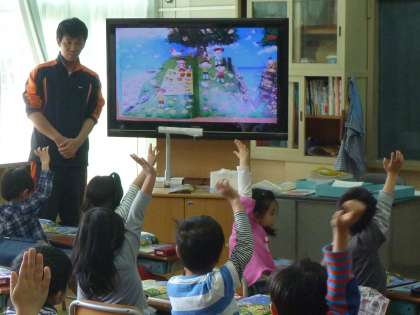 今日は、1年生でも早速使われていました。子どもたちは熱心に画面を見て、先生の質問に答えていました。