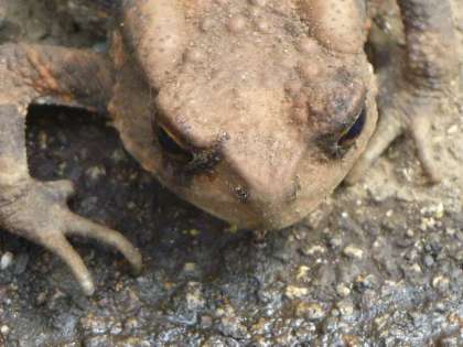 八幡ファームでの作業中、3年生の児童が見つけてくれました。立派なアズマガマガエルです。さすがに教室では飼えないので八幡ファームの住人に戻ることになりました。たくさんの作物と一緒に大きく育ってくれたらうれしいです。