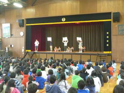 連休前の木曜日、集会委員会が今年初めての児童集会を開きました。八幡小学校に関する問題を作り、全校にクイズを出していました。問題は低学年でも答えられるように工夫してありました。