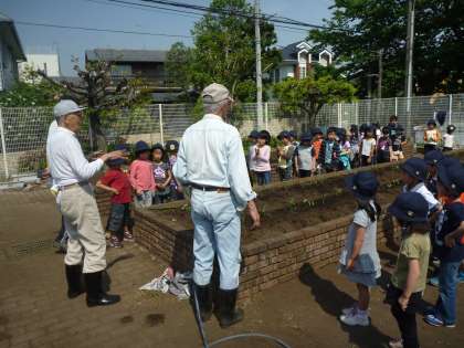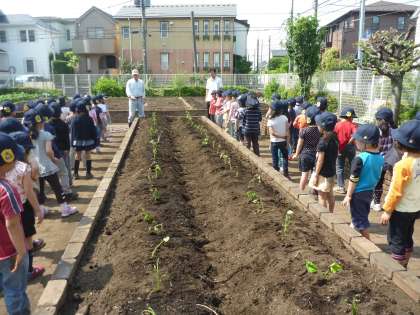秋にはきっとたくさんのお芋が収穫できることでしょう。みんな頑張って水やりをしましょうね。