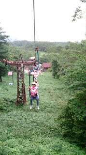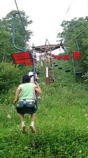ガタゴトと山頂へリフトは登っていきます。足元には美しい植物が、振り返ると雄大な景色が広がっています。流れてくる雲で遠くまで見えないのが残念です。