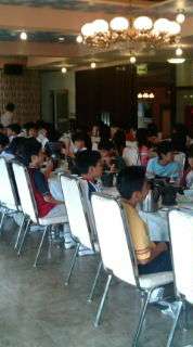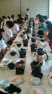 朝食のようすです。寝不足の子もいるわりには、けっこうしっかり食べています。