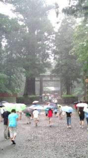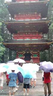 五重塔の前で。雨は少し弱くなったような気が・・・と思うとまた激しく・・・とい繰り返しです。