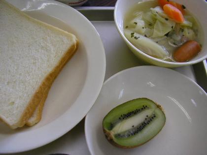 今日の献立は、ポトフ、ダブルサンド、キウイ、牛乳です。