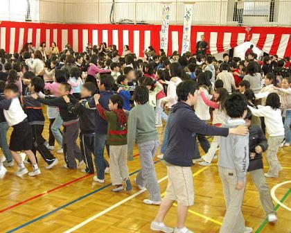 1年生からのプレゼント、2年生からの寄せ書き、4年、5年からの垂れ幕披露、みんなでじゃんけんゲームなどが行われました。