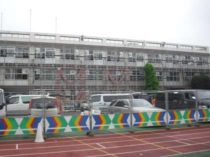 校庭側のグレー色の覆いがはがされ教室の中が明るくなりました。