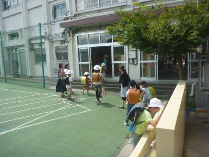 今日は総合防災訓練がありました。保護者の皆さんが廊下に迎えにこられ、児童と一緒に下校する訓練が行われました。全体としてはスムースに下校することができました。