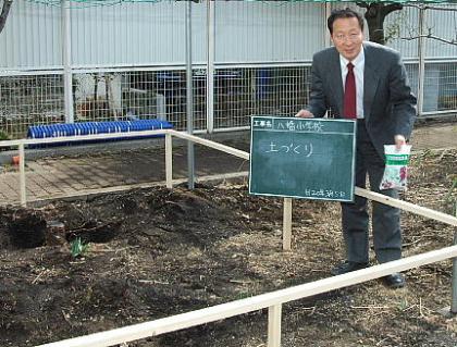 本校では理科・生活科の研究、環境教育と関連付けて、「苗のリレー」プロジェクトに参加することになりました。このプロジェクトは、「匠の会」(工務店で組織する団体)が企画し、日本の森林資源について考えてみよう、もっと関心をもってもらおうという目的で、都会の学校で苗木をおよそ2年間種から育て、その苗を、山へ植林しようというプロジェクトです。