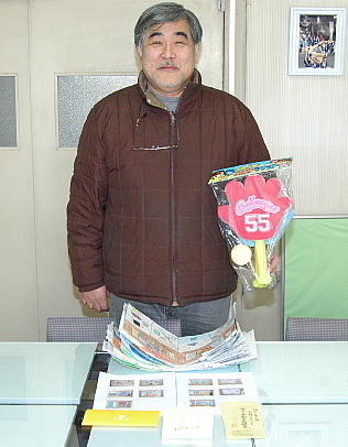 地元商店街の「玉川奥沢会」から依頼を受け、昨年末に作品募集した「お正月の絵」が今日5日に戻ってきました。会長さん(写真)自らが届けてくださり、入選作品も決まっています。賞品や参加賞もいただきましたので、来週の月曜日、朝会で表彰します。