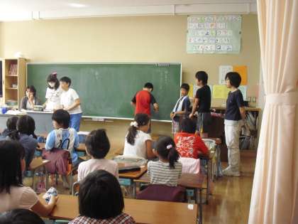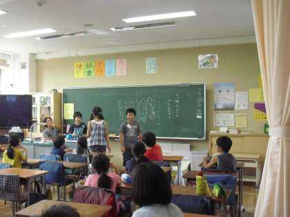 授業前の縦割り活動です。今日は、2学期の遊び計画を班のメンバーで話し合います。高学年が中心になり低学年のことも考え決めていきました。