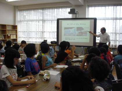 総合的な授業で国際理解教育として海外で活動経験豊かな講師を招き、パワーポイントによるスライドを見ながら、体験談を聞くことができました。