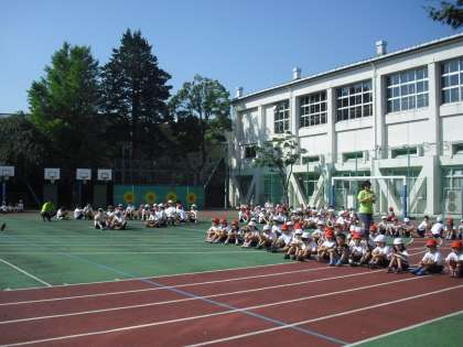 朝の体育集会で全校長縄大会を行いました。1・2年生も8の字跳びに挑戦していました。5年生が川場移動教室で参加していません。体育着に着替えた児童が真剣に活動していました。記録が伸びるようこれからも練習していきます。