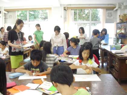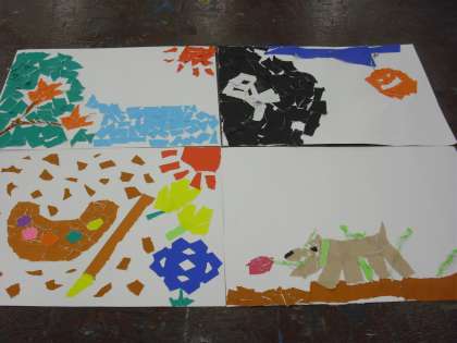 来週、世田谷美術館に4年生が「アンリ・ルソーから始まる素朴派とアウトサイダーズの世界」展にいきます。今日は、そこに飾られている山下清「晩秋」の写真を見て、秋にちなんだちぎり絵の制作をしました。