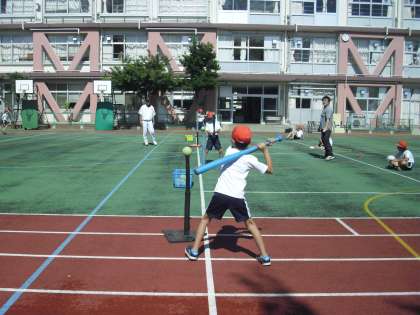 3年生がベースボール型ゲームのティーボール指導していただきました。キャッチボールやバッティング練習を能率的に練習させてもらいました。来週は、ゲームを取り入れて授業していただきます。