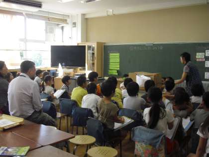 町探検に出かけたことをグループで新聞にしたり、紙芝居にしたりして発表会をしていました。