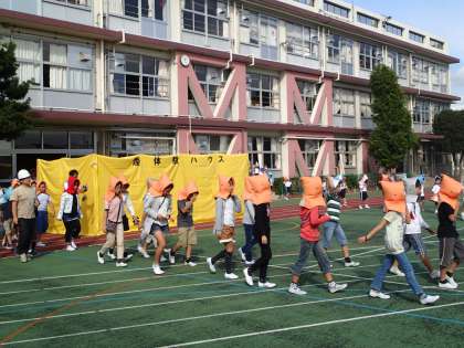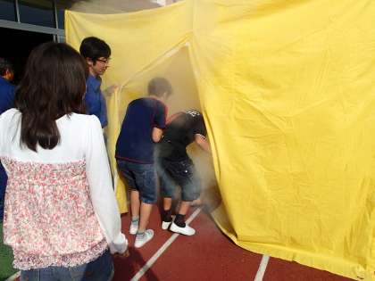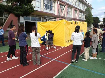 今日の避難訓練は、通常の避難訓練に加えて、スモークハウスの体験を3年、6年で行いました。全く前が見えない煙の中は、どのような感じなのか体験してもらいました。