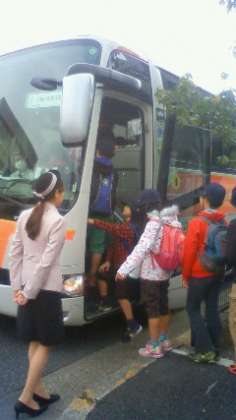 4年生の社会科見学です。いよいよ出発です。水の科学館、葛西臨海水族園、虹の下水道館に行ってきます。