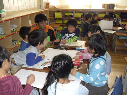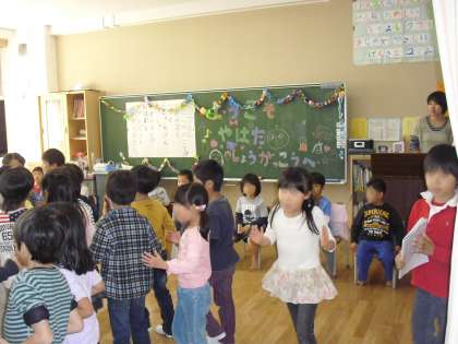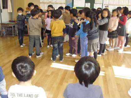 今日は1年生がぶどうの木保育園と交流しました。歌を歌ったり、音読発表、お絵かき、ゲームなどをして、楽しい時間を過ごしました。
