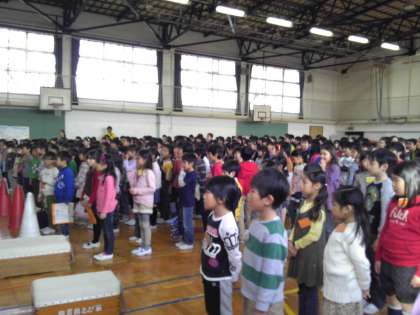 体育館に集まり開会式のセレモニーです。代表委員が中心に開会式が進みました。いよいよ前半が始まります。16グループのお店の始まり。