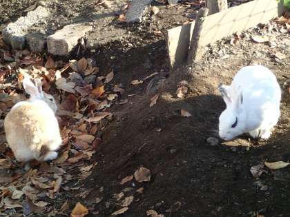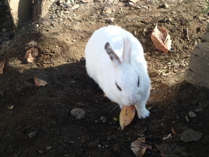 八幡のウサギたち。手のひらにのるような小さな状態から育ててきましたが、今ではすっかり大きくなりウサギ小屋の中を飛び回っています。時には世話をする子どもたちを威嚇するような気の強さを発揮しています。
