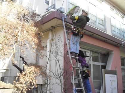 正門周辺が夜間、暗い状態であるということでしたので、夕方に自動的に点灯する常夜灯を設置しました。これで、お迎えに来られた方も安心して出入りできると思われます。