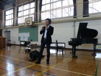 音楽をはじめ様々な分野でご活躍の雅楽師・東儀 秀樹様による講演と演奏会を体育館で行いました。