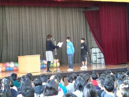 昨日、奥沢祭りマラソン大会がありました。本校からも約80名が参加しました。3着までに2名が入り、全校朝会で紹介されました。来年もまたがんばってほしいと思います。