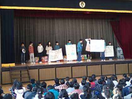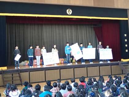 明日21日(火)から23日(木)までの3日間、ユニセフ募金が行われます。今日は代表委員会が全校の児童にその必要性を訴えました。多くの子どもたちが病気や飢えで亡くなっていく現状を伝えていました。自分たちができることから始めていきましょう。