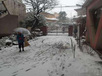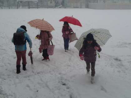 今日は本格的な雪でした。校庭は白銀の世界に!今日は学校公開の土曜授業の日だったので、子どもたちや保護者で学校は満員。帰り際に校庭に出た子どもたちは雪にビックリ。「家で雪遊びするぞ!」と叫びながら帰って行きました。今も雪は降り続いています。