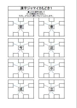算数のジャマイカもどき1に続き、国語問題のタグに「漢字ジャマイカもどき1」が登場しました。一つの漢字につながる熟語を考える問題です。わからないときには辞書を使ってもいいですが、はじめは自分の頭の中にある言葉で考えましょう。さて、あなたは全部クリアできるかな?