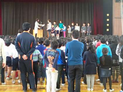 各クラスから選ばれた健康努力児童の表彰がありました。それぞれ、自分の体を健康に保つために努力してきたことが全校の子どもたちに紹介されました。表彰された児童と共に病気に負けない強い体を作っていきましょう!