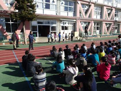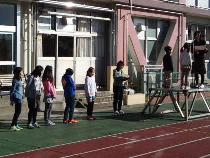 朝会で、世田谷の作文集、「さくぶん」に優秀な作品を出した児童の表彰がありました。また挿絵で選ばれた児童も紹介されました。