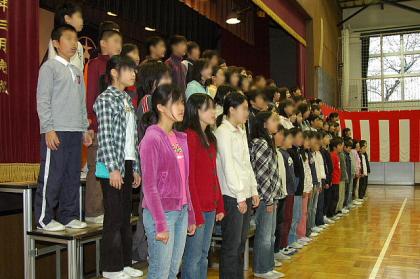 24日、昨日までの暖かさとはうって変わって冷え込む体育館で、5・6年児童と全職員が参加して卒業式の予行練習が行われました。練習の最中に雨あしが激しくなったり、寒さに身が凍えたりと条件はよくなかったのですが、どの子も明日の本番を控えてよい意味での緊張感をもって練習することができました。明日の天気予報は晴れ。まさに小学校6年間最後の晴れ舞台。期待しています。たくさんの方々の参列をお待ちしております。
