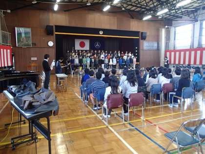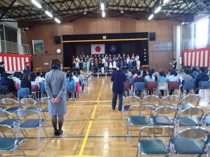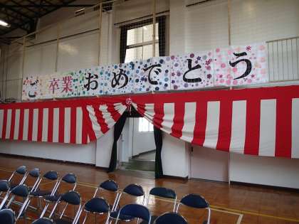 今年度の卒業式は3月25日(火)に行われます。合同練習がはじまり、今日は呼びかけや歌の練習でした。紅白幕のかかった会場で少し緊張気味の5年生と共に、6年生が大きな声で頑張っていました。