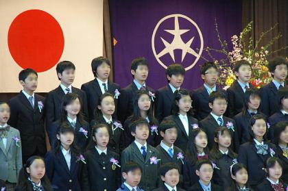 卒業生一人一人の晴れ姿の余韻が残る中、校長式辞、八幡中学校副校長と本校PTA会長からのお祝いの言葉がありました。ご来賓からの心温まる励ましの言葉、将来への示唆を与えていただき、卒業生のみならず、参列した5年生も真剣にうなづきながら聞いていたのが印象的でした。
