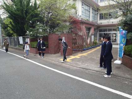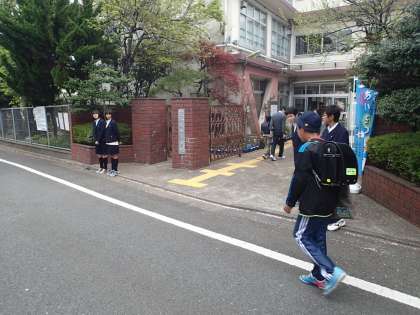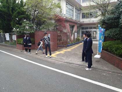 昨日は、さぎそう学舎九品仏自治会のあいさつ運動の一環で、八幡中学校生徒が八幡小学校に来校しました。正門で元気にあいさつをしてくれました。