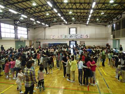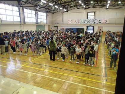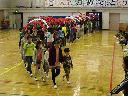 歓迎のための全校ゲーム、「じゃんけん列車」では、負けた人が後ろについていくので、小さい子の後ろに長い列ができたものもありました。