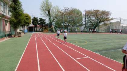 準備運動が終わった後、2人組みになり、50mを全力で駆け抜けます。