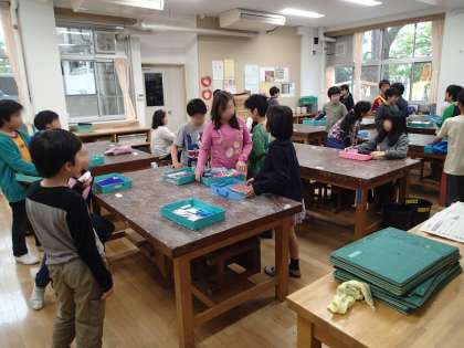 今日は,4年生の図工授業で席を決めました。図工セットをもって新しい席に座って行きました。一学期の学習環境が整い、子どもたちの意欲も高まりました。友達のよさも認めながら自分の世界を広げてほしいものです。