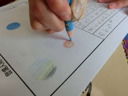 写真下:一生懸命書いています。
