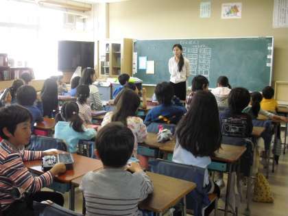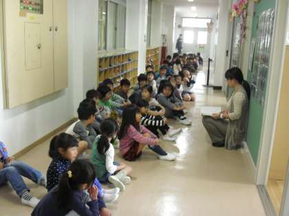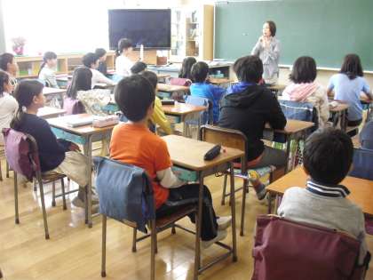 1年間の縦割り活動計画を立てる授業です。14教室(28班)に全学年わかれ6年生が中心に進めます。自己紹介、約束、1年間の流れ、1学期の遊び計画を話し合います。