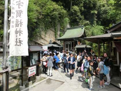 途中、銭洗弁天に寄り、お金を清めます。(写真中)