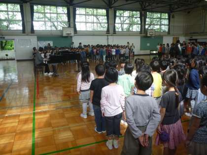 今年初めての音楽朝会
