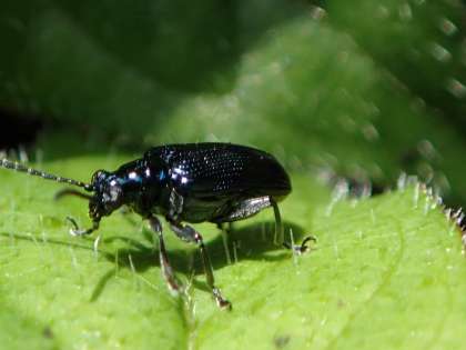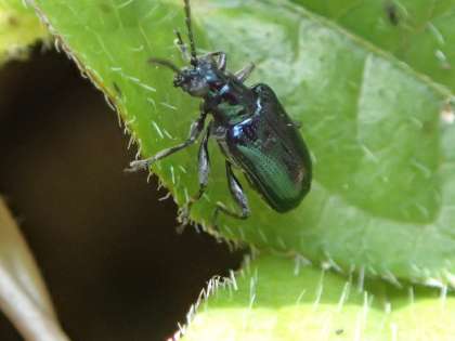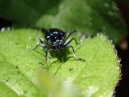 昆虫の中にはタマムシのように美しい衣をもっているものも多く、この青く光り輝くスゲハムシも甲虫の宝石と呼ばれています。八幡ファームのフェンス沿いにひっそりと隠れていました。食草はカサスゲです。水辺に育つ植物。さて、彼らはどこから来たのでしょうか。