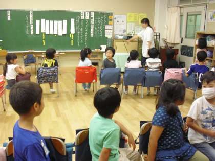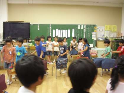 今日は1年生が学級会をおこないました。「なかよくなる あそびをしよう」をテーマに熱心に話し合いました。その後、みんなで椅子取りゲームをやりました。楽しい学級会でした。