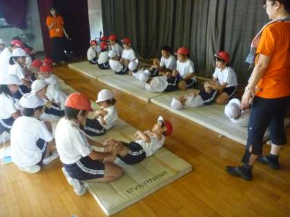 1年生には6年生が、2年生には5年生が補助につきました。上手に計測のお手伝いをしてくれました。