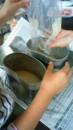 いよいよ、飯ごう炊飯です。美味しくカレーができるかな。