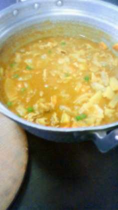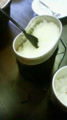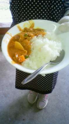 カレーが完成です!ご飯も美味しそうに炊けました。さあ、いただきます。