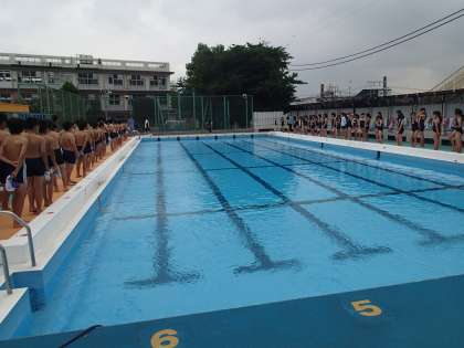 今日は高学年のプール開きがありました。今年の無事を願い、また自分たちの目標に向かって努力することを誓っていました。